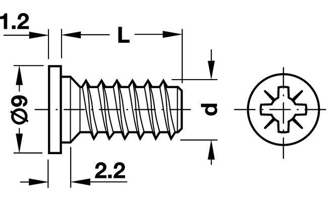 Гвинт для вкручування в алюміній, для отворів Ø 5 мм, виготовлений з нїкельованої сталі. Параметри гвинта: привід: хрестовий шліц PZ2, крок різьби 1,6 мм, зовнішній діаметр 6 мм, внутрішній діаметр 4,7 мм, довжина 12 мм.