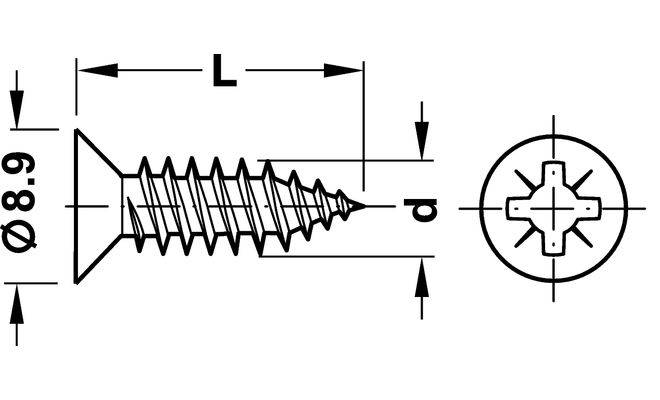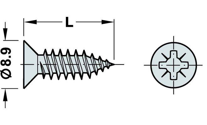 Гвинт для вкручування в полегшені плити, для отворів Ø 5 мм, виготовлений з оцинкованої сталі. Параметри гвинта: привід: хрестовий шліц PZ2, діаметр різьби 7 мм, довжина 13,5 мм. Цими гвинтами також може кріпитись інша фурнітура, наприклад шарніри,направляючі, тримачі для полиць і тд.