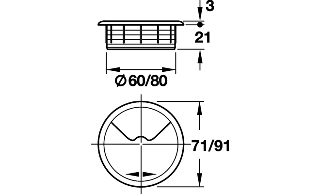 Технічні характеристики Кабельний канал з поворотним сегментом 2-х секційний пластмаса, нержавіюча сталь 80 мм 63121004