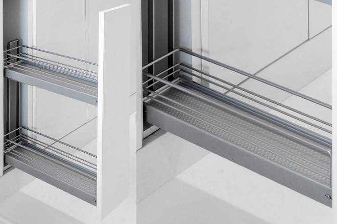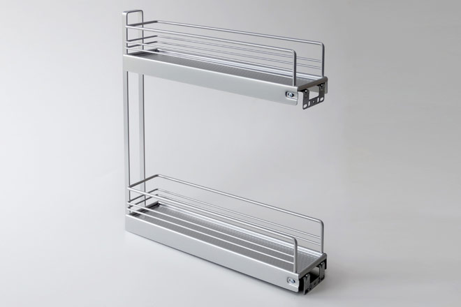 Карго Häfele Classic 150 мм, 2-рівневе, кут 90°, з доводчиком. Матеріал: сталь з порошковим покриттям, колір срібний.
