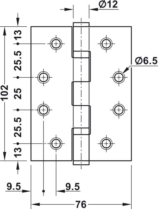 Карткова петля DHB 2122 для міжкімнатних дверей без фальца до 120 кг 102х76х2,5мм нержавіюча сталь матова