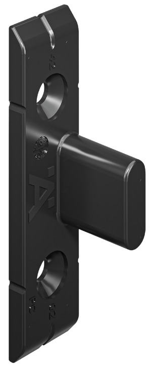 Деталь рами ЕН, для кріплення до нижніх конструкцій. Монтаж виконується за допомогою шурупів для ДСП з потайною голівкою діаметром 4,0 мм. Навісна фурнітура виготовлена з пластмаси (полікарбонат) чорного кольору, Температурний діапазон від - 100 до + 135°C. Фурнітура використовується для кріплення панелей до рамних конструкцій. Навісну фурнітуру Keku неможна обробляти хімічними розчинами або агресивними змазками, та монтувати ударами.