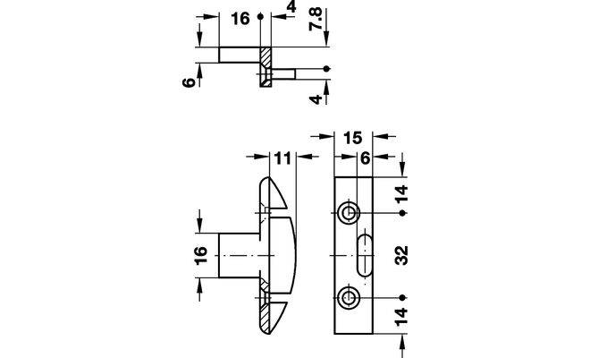 - Кріплення: гвинтами Ø 4.0 мм (шурупи по ДСП з потайною головкою)