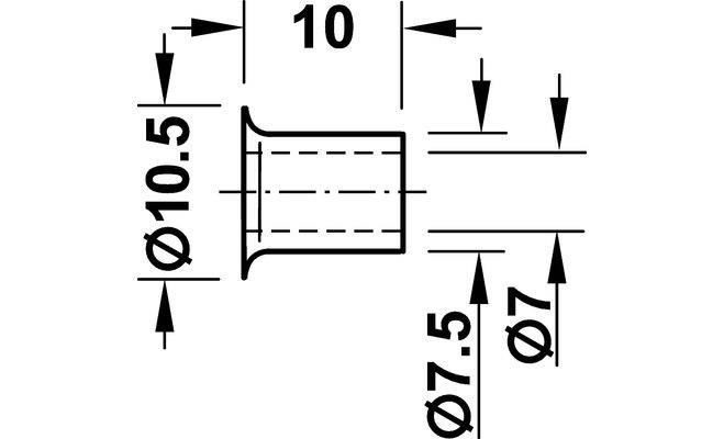 Втулка для полицетримача, матеріал: сталь, латунована, для отвору діаметром 7.5 мм.