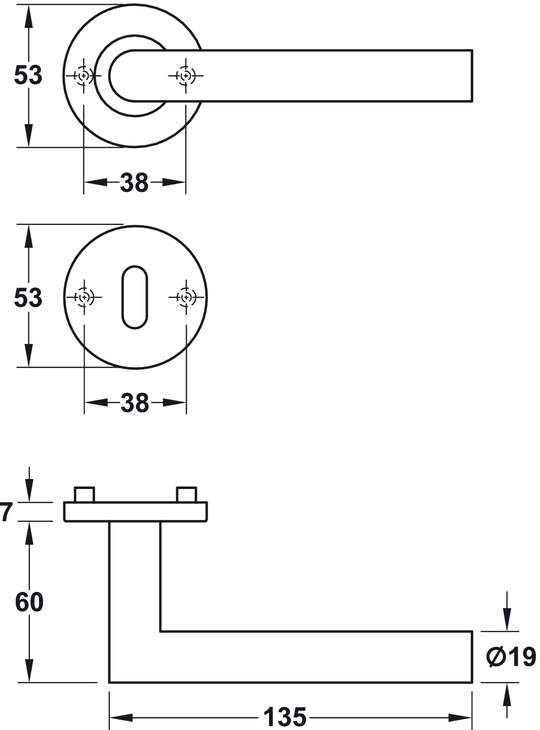 Комплект важільних ручок, виготовлених з нержавіючої сталі. Є в наявності з кольором латуні та оригінальним, поверхня матова та полірована. Кріплення одностороннє, за допомогою 4 різьбових гвинтів 4 х 60 мм. Застосовуються для дерев’яних дверей під ключ з борідкою. Чудово підійдуть до дизайну сучасних інтер’єрів та слугуватимуть довго та надійно завдяки якості та надійності використаних матеріалів.