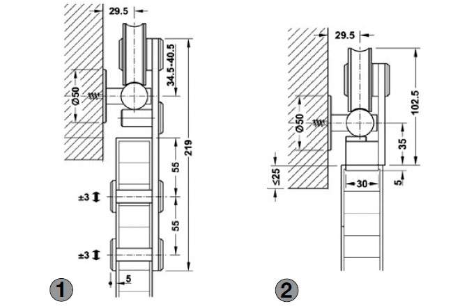 - Для дерев’яних розсувних дверей товщиною 28-42 мм