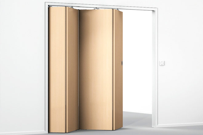 Комплект фурнітури Fold 50-K для 3-х складних дверей вагою дверного полотна до 50 кг з ходовою шиною 2 м - це прекрасне рішення для проектування складних перегородок в житлових приміщеннях. Крім того, його можна використовувати і для наступних цілей: