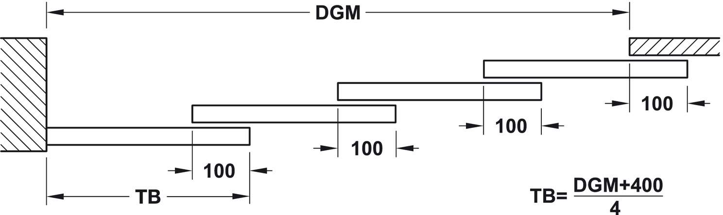 Опис Комплект фурнітури Slido Telescopic Synhro 100-A для чотирьох дверей вагою дверного полотна до 50 кг з чотирма ходовими шинами 4 м, (варіант №3) 49940222