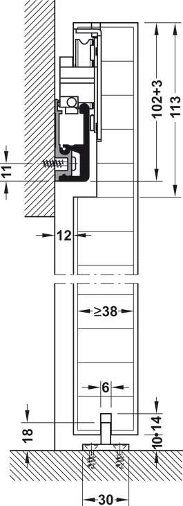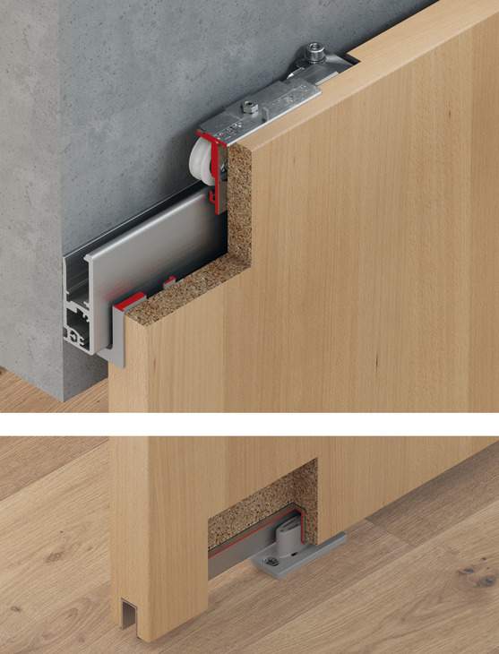 Опис Комплект фурнітури Design 80-V (Е2) для одного дерев'яного полотна до 80 кг з 2-стороннім демпфером ширина дверей ≥680 мм відстань від стіни 18мм 94082168