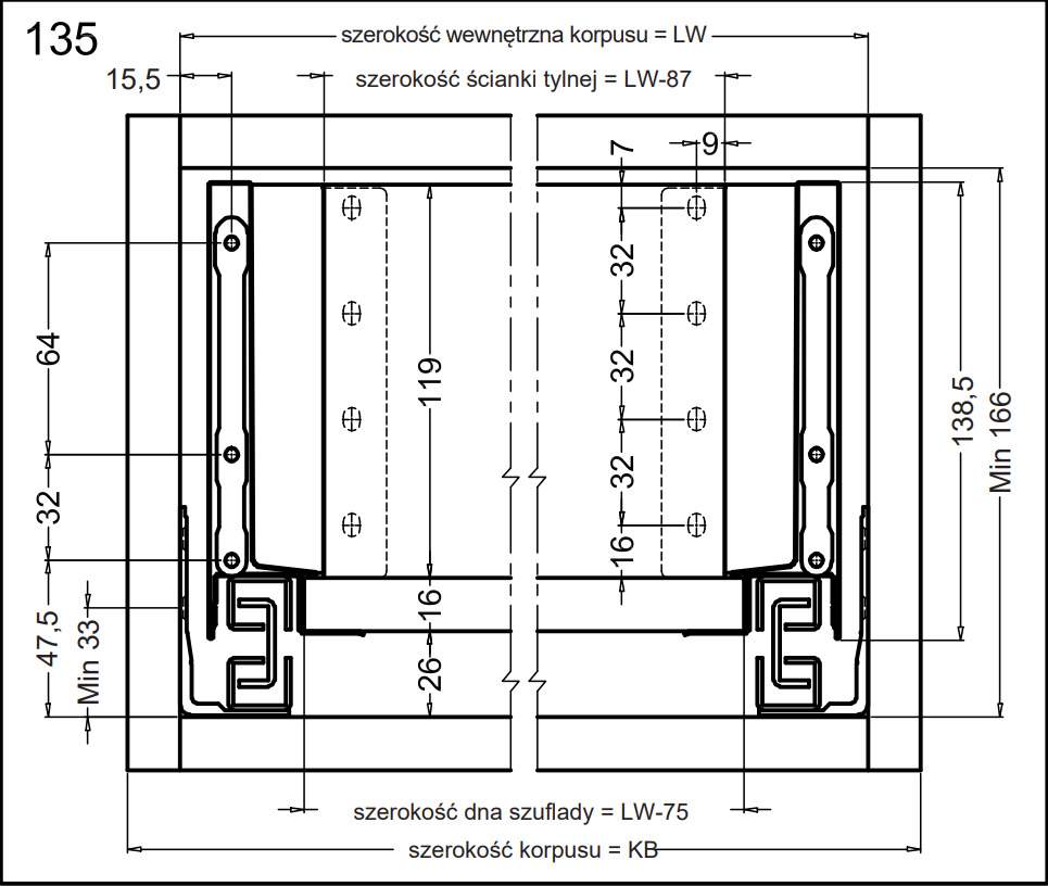 - Висота (H): 135 мм