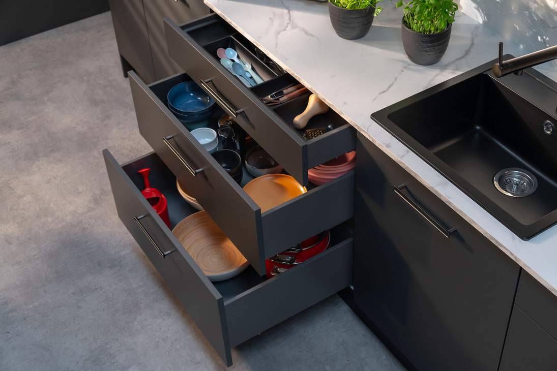 Matrix S Slim 2.0 — тонкостінна система шухляд для сучасних кухонних меблів. Середня висота 135 мм у поєднанні з довжиною 450 мм забезпечує оптимальну місткість і комфорт у щоденному використанні.