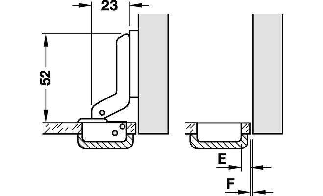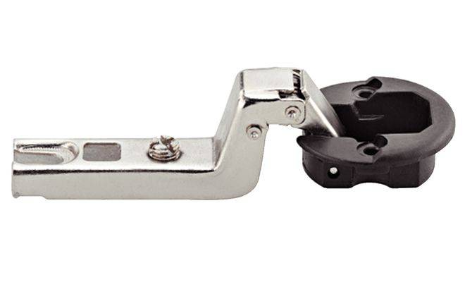 Опис Комплект петлі METALLA MINI A 95° для скла 4-6 мм внутрішня сталь пластик нікельований чорний монтажна планка 0 мм заглушка до чашки срібний 31101104