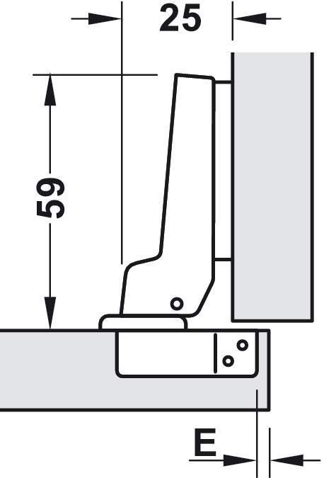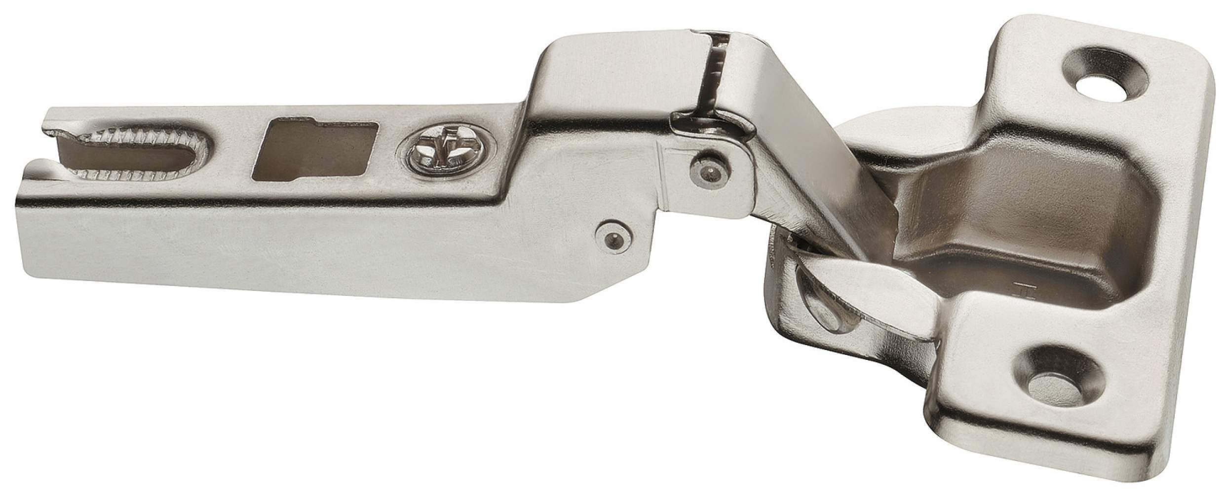 Комплект петлі Häfele Metalla S 110°, півнакладна. Матеріал: сталь, покриття нікель. Шаблон свердління 48×6 мм, кріплення під шуруп. У комплекті монтажна планка 2 мм, сталь нікельована.