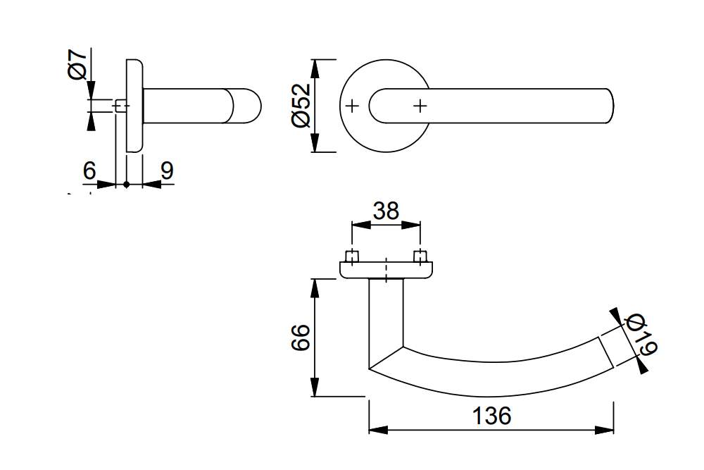 набір ручок для комерційного використання - Взаєморозташування: дверні ручки окремо, необслуговувані підшипники ковзання