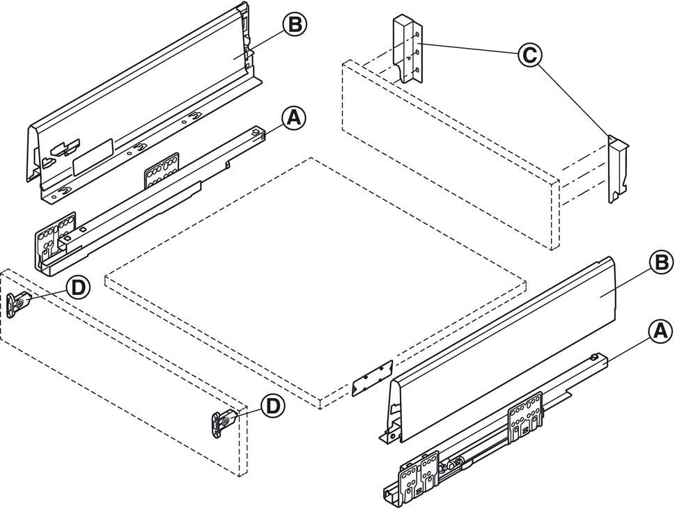 Опис Комплект висувних ящиків Matrix Box S до 35 кг 120 х 400 мм з доводчиком білий 55254793