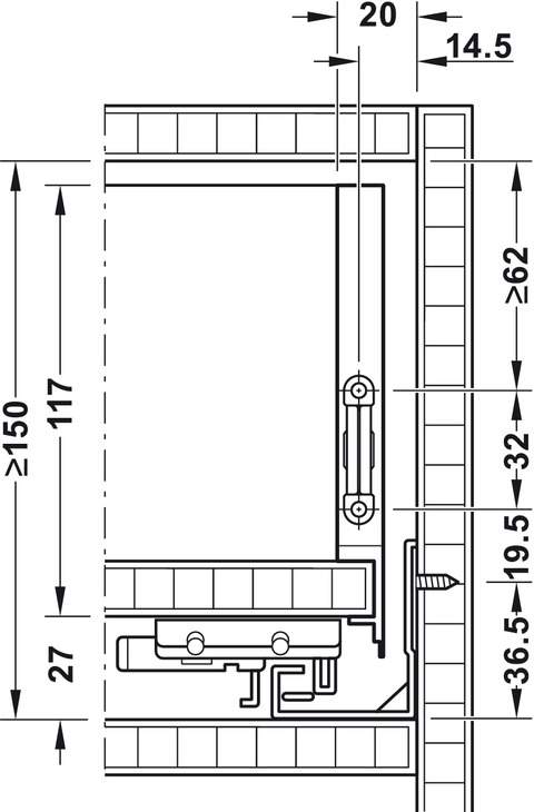 (A) 1 ліва і 1 права направляюча (push to open для фасадів без ручок)