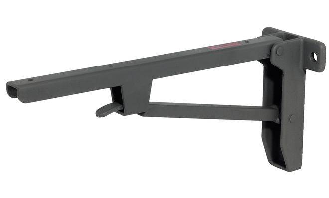 Консоль, відкидна, Hebgo, з фіксатором, придатна для робочих поверхонь і лавок, матеріал: сталь, колір: сірий, загрунтований, розмір 480х115х180 мм, застосовувати виключно попарно, максимальна відстань між двома консолями 150 см, максимальне навантаження на пару 500 кг.