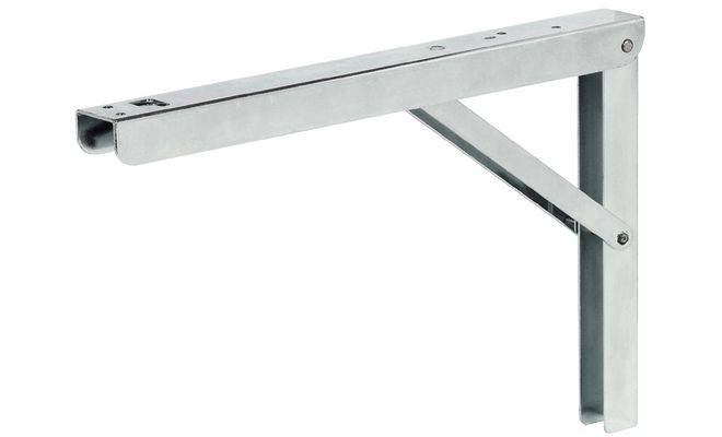 Консоль, відкидна, з фіксатором, переставляється в 3 положення, матеріал: сталь, оцинкована, розмір 400х36х270 мм, максимальне навантаження на пару 150 кг.