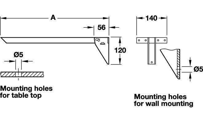 Консоль, відкидна, з фіксатором, придатна для робочих поверхонь і лавок, матеріал: сталь, колір: коричневий, розмір 460х140х120 мм, максимальне навантаження на пару 200 кг.