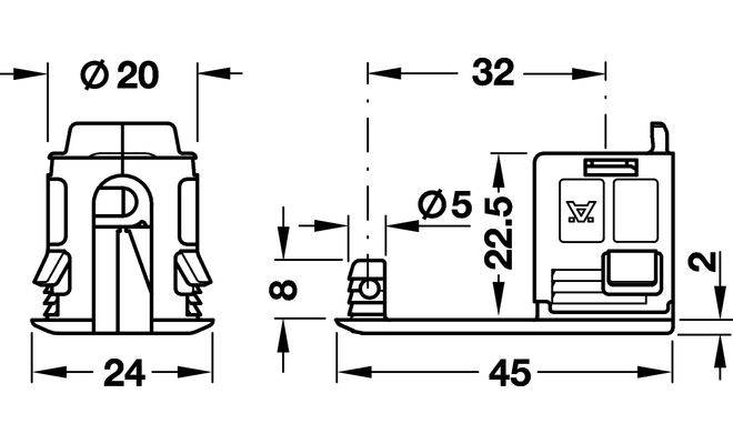 Технічні характеристики Корпус стяжки RAFIX HC зі штифтом пластиковий чорний D20 мм глибина свердління 22.5/8мм (упаковка 100 шт) 26318302