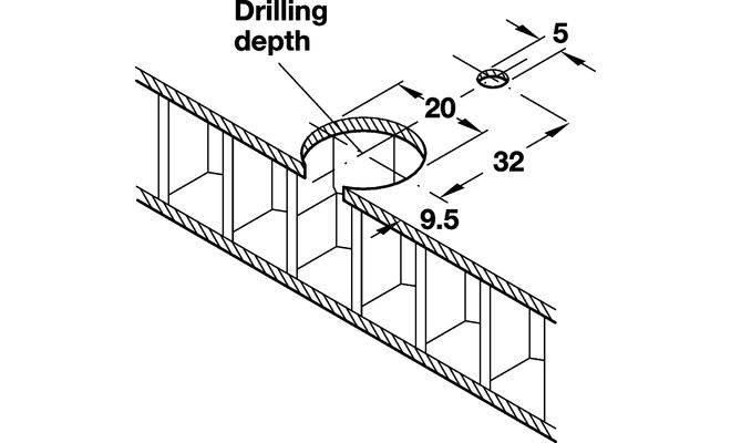 Корпус стяжки Rafix 20 HC, для товщини плити 32-50 мм. Врізна частина стяжки виготовлена з пластмаси кольору нікеля з лакованою поверхнею, кріпильний елемент виготовлений з цинкового сплаву. Параметри стяжки: глибина свердління-22,5мм; діаметр отвору для врізної частини-20мм; діаметр отвору для цапфи-5мм; привід -хрестовий шліц PZ2. Корпусні стяжки Rafix 20 HC застосовуються для полегшених плит з покрівельним шаром 4мм і можливістю розширення клею і фіксуючими носиками в середньому шарі.