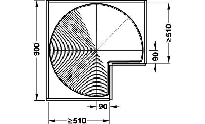 Опис Корзина дротяна поворотна на 3/4 кола сталь хромований полірований D820 мм 900x900 мм 54118231
