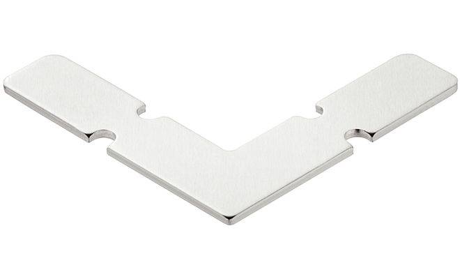 Кутова стяжка для збірки Z- подібного рамного профілю.Стяжка вигтовлена з алюмінію з анодованою поверхнею сріблястого кольору.