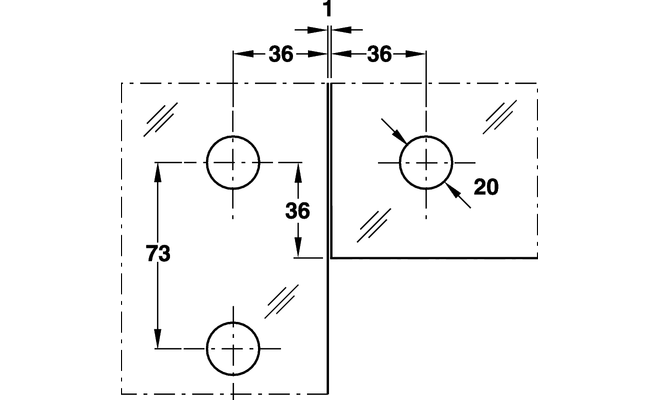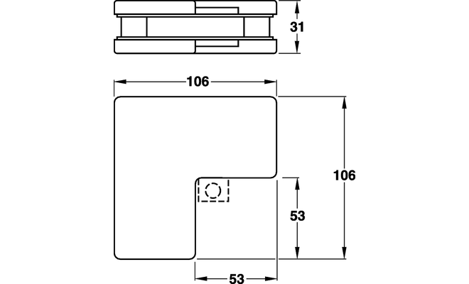 Технічні характеристики Кутовий з'єднувач, скло/скло, для маятникових дверей нержавіюча сталь 106x106x31 мм 98100060