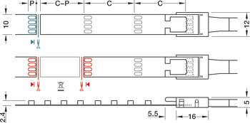 Замовляйте кабель окремо. Алюмінієвий профіль рекомендований від 9,6 Вт/м. Керування кольором через 6-сторонній розподільник Häfele Connect Mesh з RGB-адаптером і пультом дистанційного керування або смартфоном. Будь ласка, замовляйте окремо.