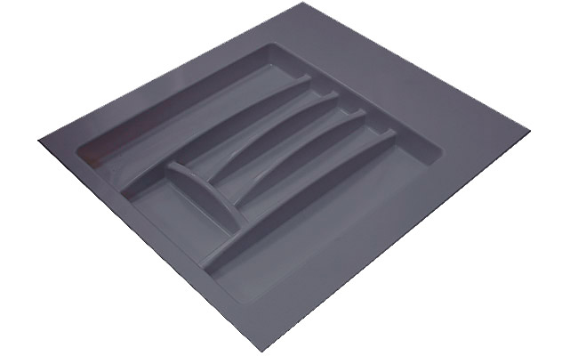 Лоток для столових приборів, матеріал: пластмаса, колір: антрацит, товщина 3 мм, номінальна довжина 500 мм, висота 50 мм, для ширини ящика 500–550 мм.
