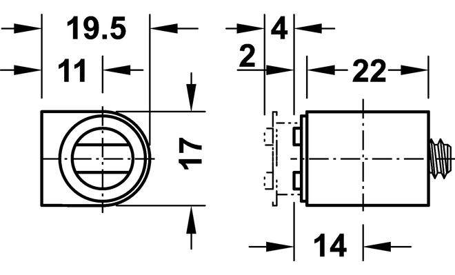 Матеріал: корпус: пластмаса, сполуч. деталь: сталь. Виконання: корпус нерухомий, сполуч. деталь рухома. Можливість настройки: магнітна вставка регулюється приблизно на + 4 мм шляхом обертання. Монтаж: корпус пригвинчується до кріпильної планки, сполучна деталь - вбиванням. Обсяг поставки 1 корпус, 1 сполучна деталь, 1 металева кріпильна пластина. Колір корпус: білий.