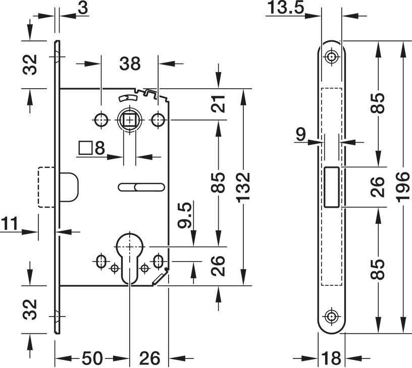 Опис Магнітний врізний замок Häfele Startec PC 50/18 мм цамак оцинкований 91123934