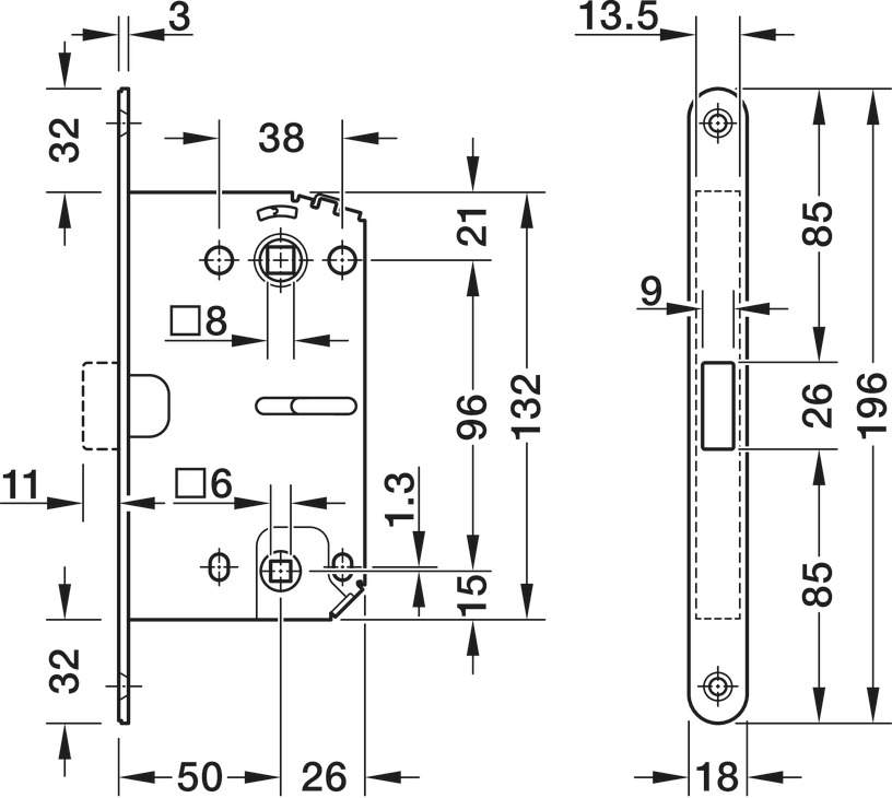 Опис Магнітний врізний замок Häfele Startec WC 50/18 мм цамак оцинкований 91123935