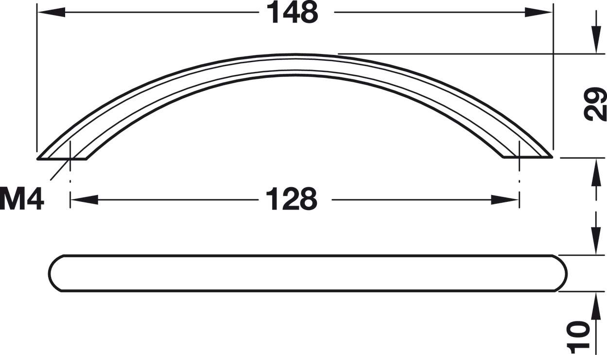 Технічні характеристики Меблева ручка дуга цамак 148 x 29 мм хромований матовий 10302400