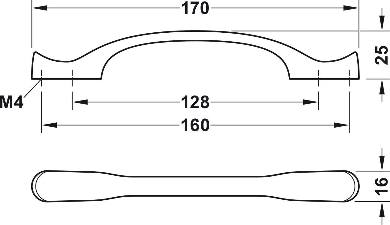 Технічні характеристики Меблева ручка дуга цамак 170 х 25 мм протертий коричневий 10669000