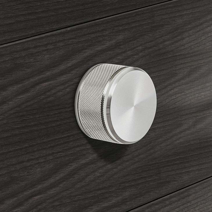 Меблева ручка-кнопка Häfele Déco H2310 з алюмінію, нікель матовий. Діаметр ручки 50 мм, висота 30 мм. Кріплення на гвинти. Оптимальний вибір для фасадів кухні, шаф і комодів у сучасному та класичному інтер’єрі.