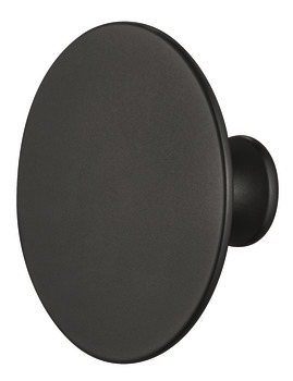 Ручка-кнопка серії Déco артикул 106.69.501 з цинкового лиття у чорному матовому покритті. Компактна модель для фасадів і ящиків.