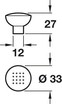 Технічні характеристики Меблева ручка кнопка цамак D28 х 25 мм хромований полірований 13548201