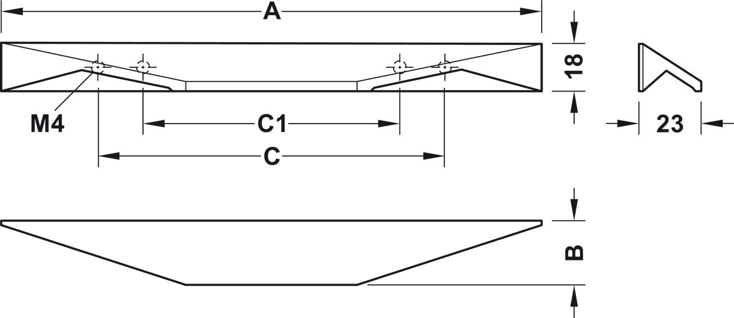 Технічні характеристики Меблева ручка навісна алюміній 200 x 23 мм анодований 11046084