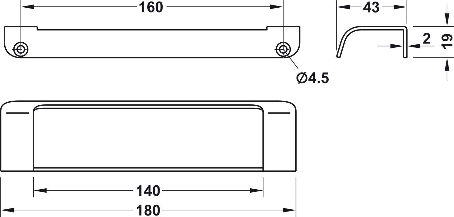 Технічні характеристики Меблева ручка навісна цамак 180 х 43 мм срібний матовий 11107016