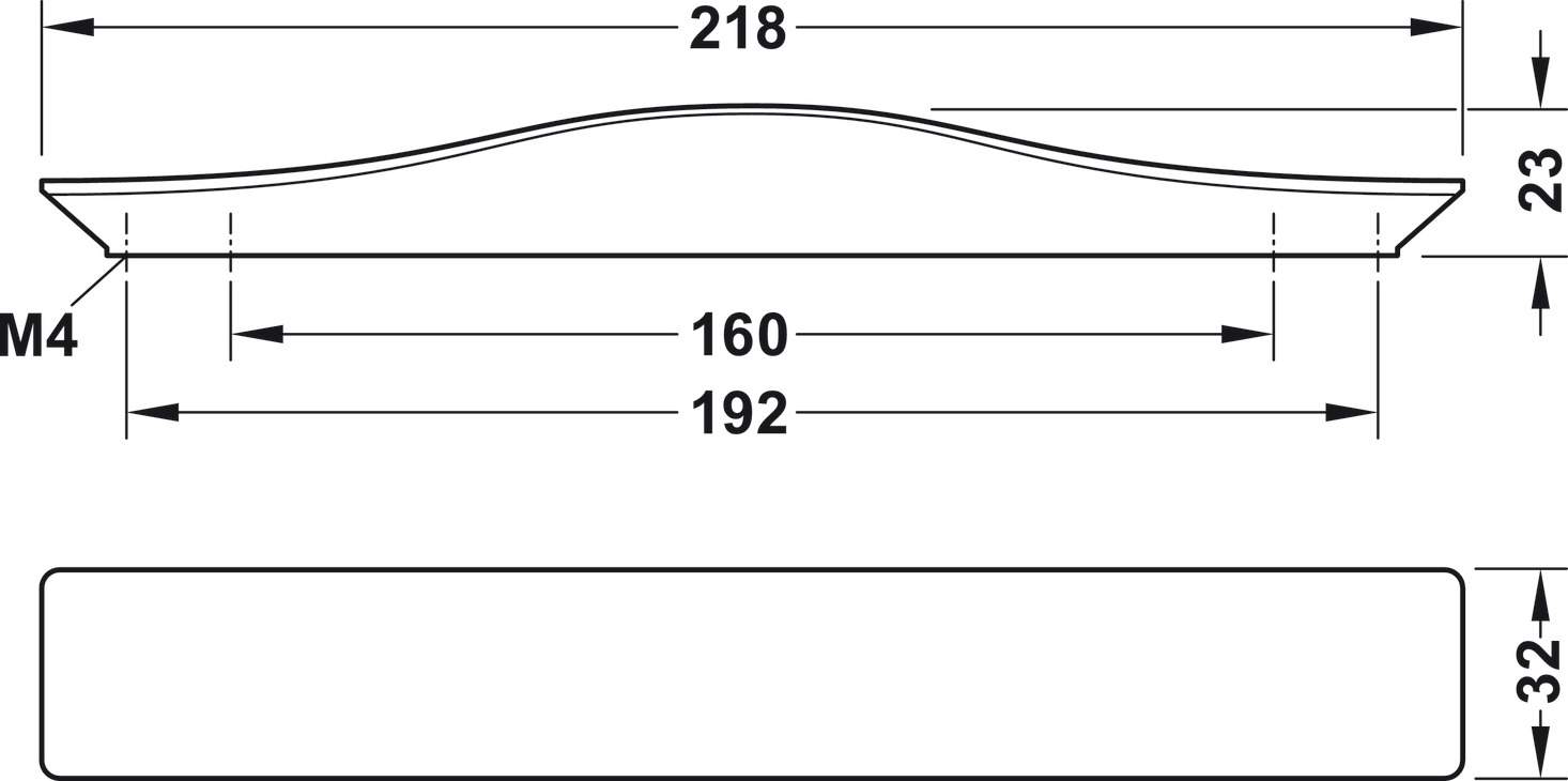 Технічні характеристики Меблева ручка навісна цамак 218 x 23 мм хромований полірований 10662286