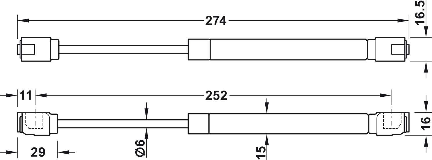 Технічні характеристики Меблевий амортизатор барний нижній 80N срібний 37382912