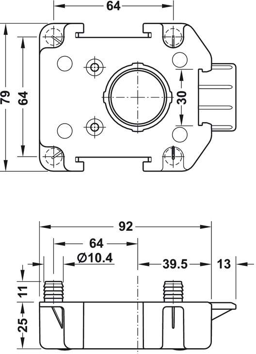 Технічні характеристики Монтажна пластина AXILO 78 пластик чорний під запресовування 63776334