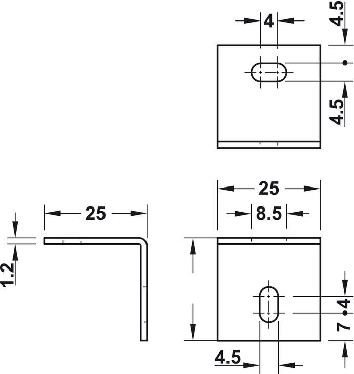 Технічні характеристики Монтажний кутник сталь оцинкований 25х25x25 мм 26026980