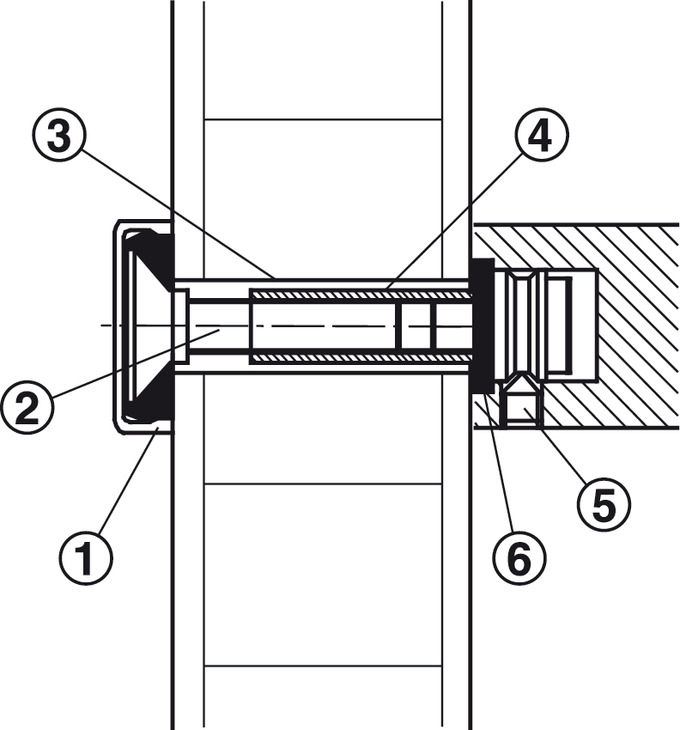 Технічні характеристики Набір для 1-но стороннього кріплення ручки-скоби до дерев'яних дверей товщиною 55-85 мм 90904844