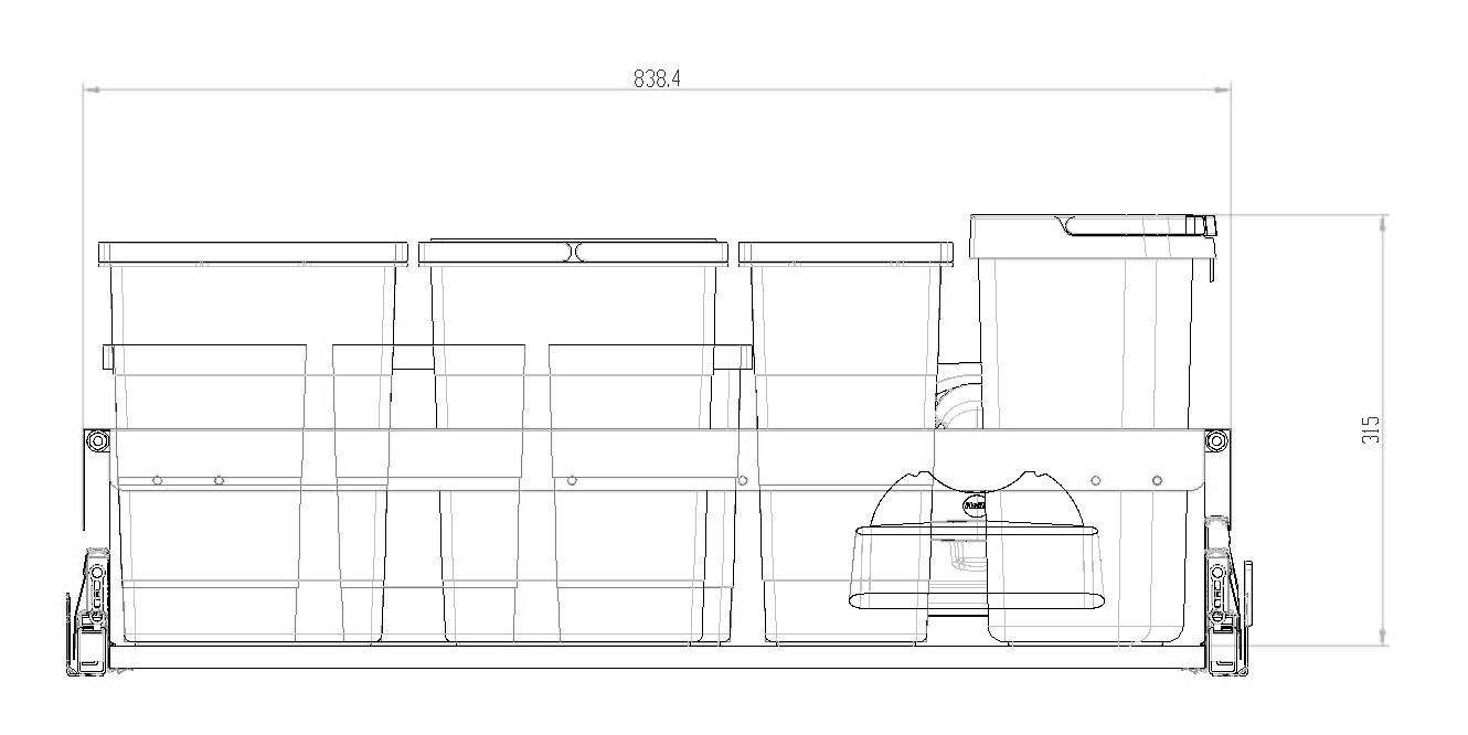 Сміттєзбірник призначений для корпусу шириною 900 мм, товщини бічної панелі 16 або 19 мм (з розпірним елементом).