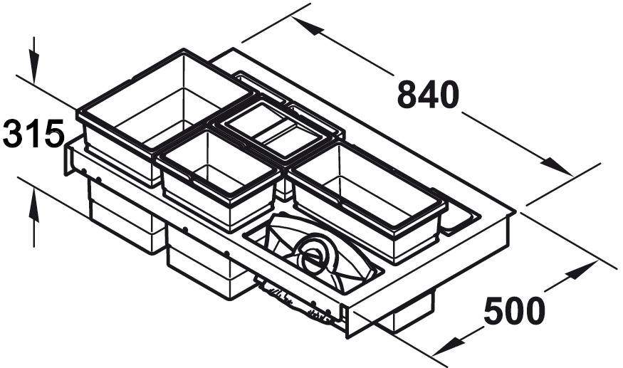 Номінальна довжина 500 мм, висота контейнерів 295, 315 мм.