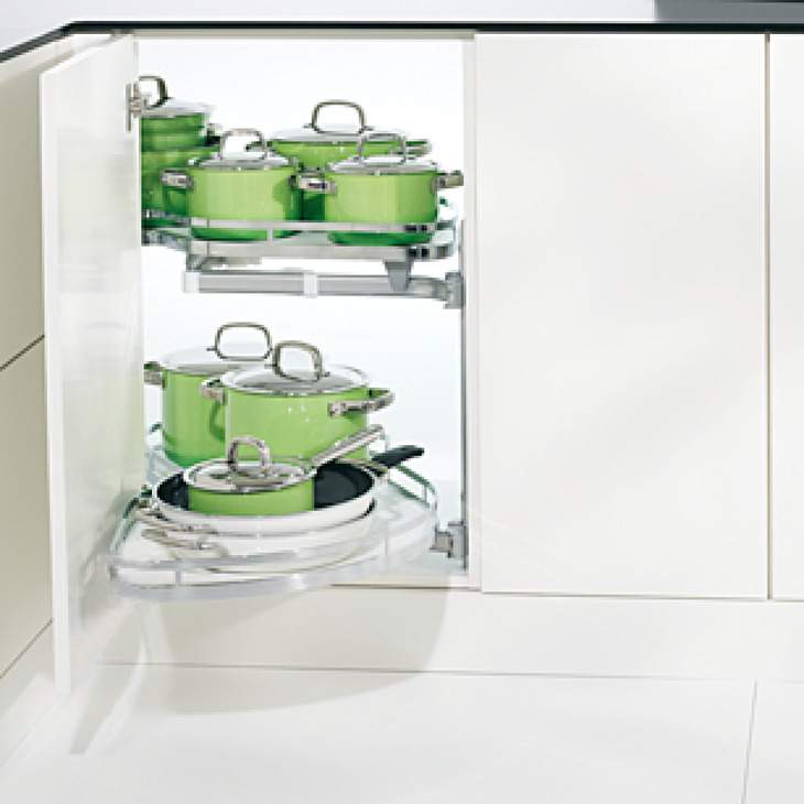 Система полиць для кутової шафи — ідеальне рішення для кухонних меблів, що забезпечує зручний доступ до вмісту та ефективне використання кутового простору.