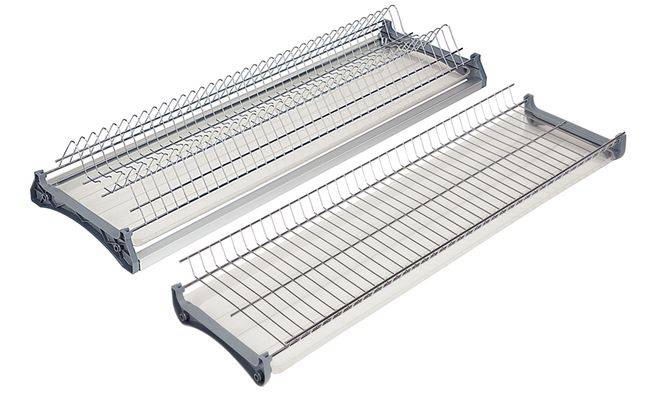 Решітка і піддон для сушки посуду, матеріал: решітка: сталь, хромована/піддон: пластмаса/бокова опора: пластмаса, сірого кольору, для ширини корпуса 800 мм, ширина 768 мм, глибина 276 мм, висота 200 мм, для товщини бокової стінки 16 мм, в комплект входить: 1 решітка і піддон для сушки посуду, дрібні, 1 решітка і піддон для сушки подуду, глибокі, 4 бокові опори.