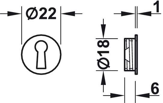 Технічні характеристики Накладка під ключ 22 мм цамак нікельований матовий 18103610